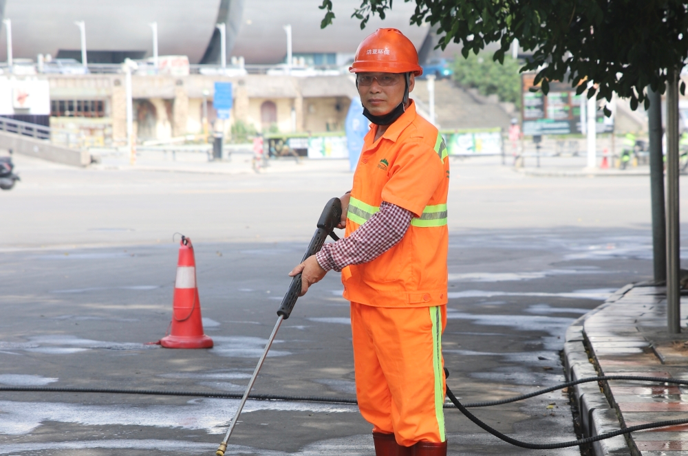 2025-05-09用汗水守护着玉林的整洁容颜。